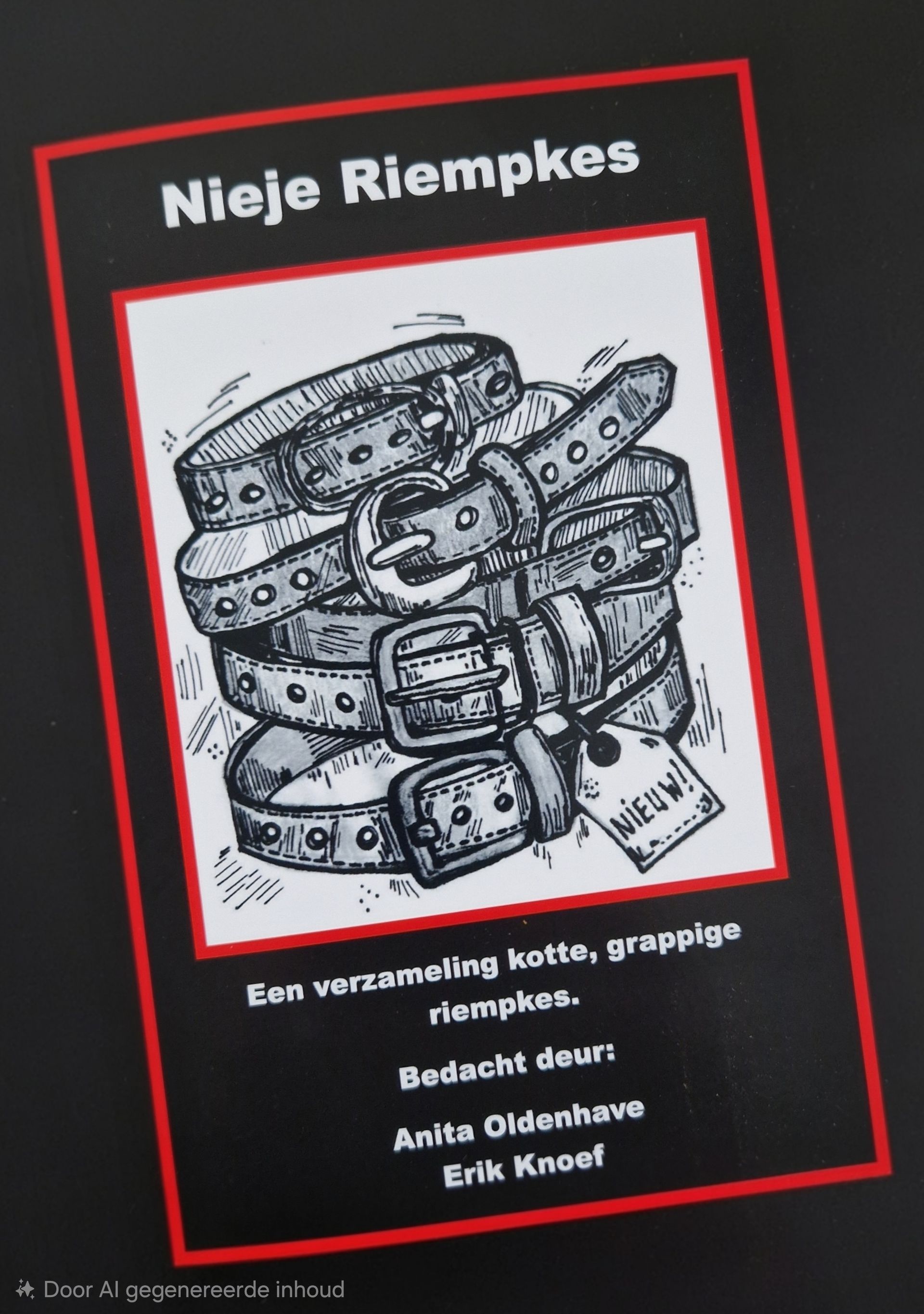 De nieuwe gedichtenbundel is uit. "Nieje Riempkes", gemaakt door Anita en Erik. Dit bundeltje staat vol met korte gedichtjes en Achterhoekse wijsheden, allemaal in het Nedersaksisch dialect.